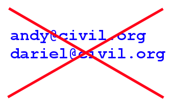 I've HAD IT with spam.Ten years ago, I thought it was cool to have my own domain, and these great email addresses. Now, I have to admit that the spammers have got too much, and something has to change. We are experimenting with passing Ruth's email through Google's gmail, but automatic spam filters - even google's - are imperfect: they send good mail to the spam folder, and allow some junk through. After several months' use, this seems to be pretty successful, actually.Therefore, I have to tell everyone to use a new email address for me. But how do I avoid this happening again? |
